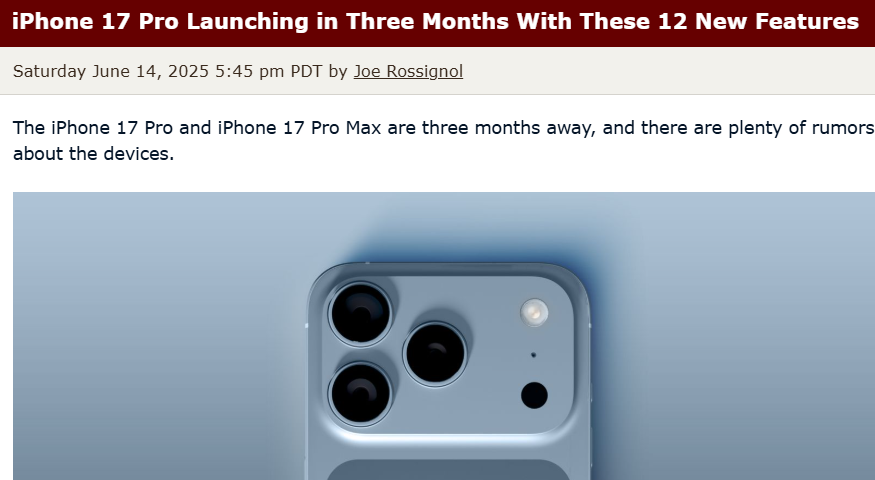 【环球网科技综合报道】近日,有关 iPhone 17 Pro 和 iPhone 17 Pro Max 的消息不断,距离其发布仅剩三个月,众多新特性引发了消费者的广泛关注。